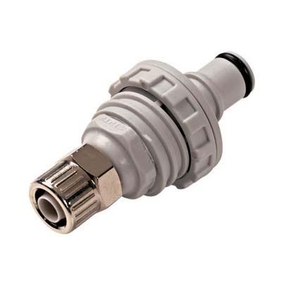Description : Embout CPC Zéro Goutte-Traversée de Cloison- À Coiffe 6.4X9.5mm Polypropylène. Gris-Bag 25-